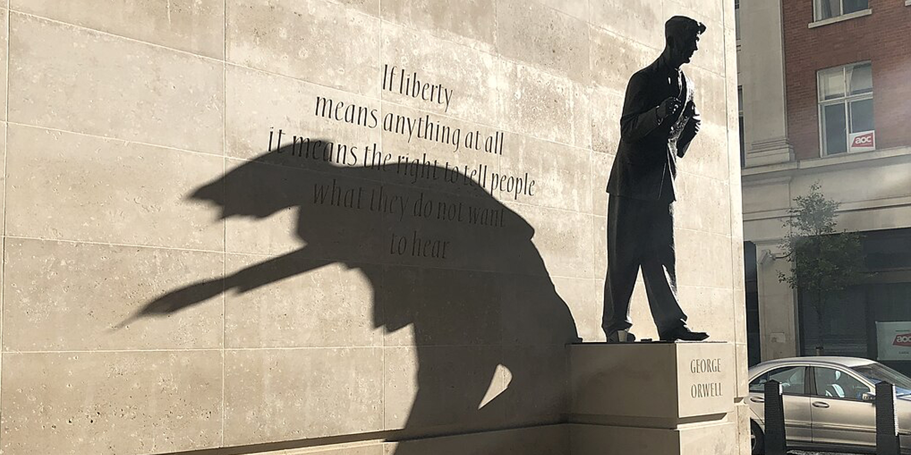 Image: Statue of George Orwell (2018) by Ben Sutherland from Crystal Palace, London, UK via Wikimedia Commons.